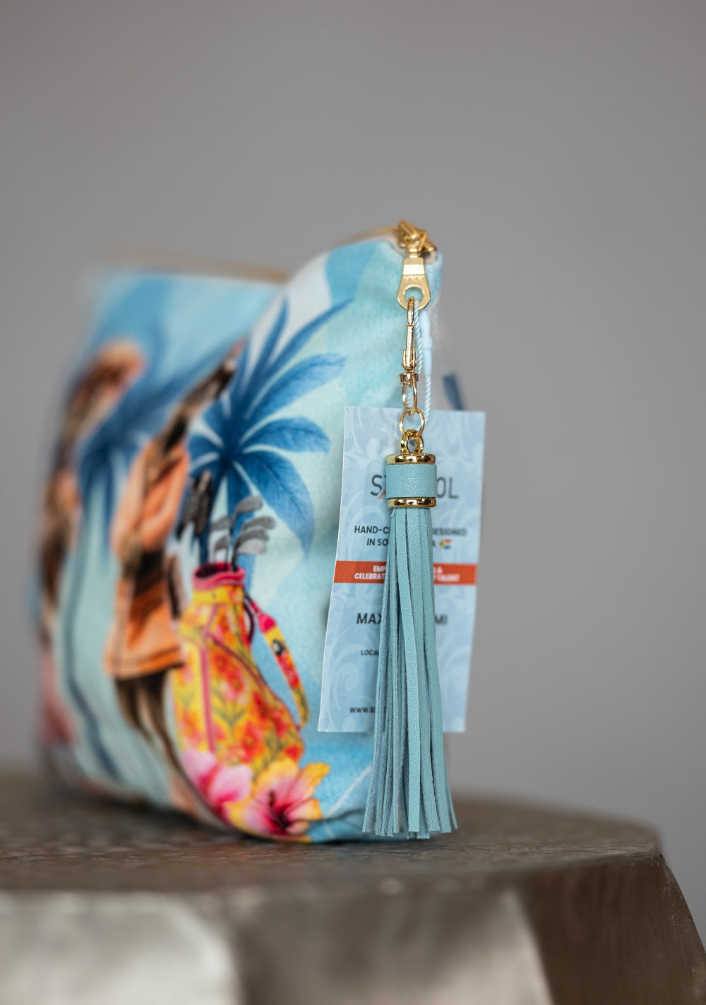 Every bag makes a bold statement and features iconic elements such as proteas, pin cushions, guinea fowls, meerkats, aloes, and the unmistakable hadedaas. To make it even more special, personalized tassels and themed tags add a playful, custom touch to your gear.